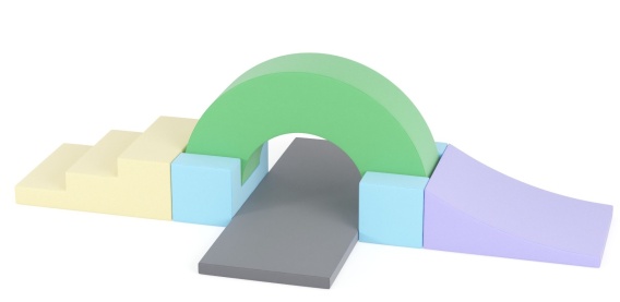 Elementy zestawu mają wysokość H300, wypełnione są elastyczną pianką poliuretanową o wysokiej sprężystości, odporną na odkształcenia. Zewnętrzne pokrycie z tkaniny Meditap z powłoką antypoślizgową zwiększa bezpieczeństwo i trwałość.