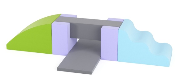 Elementy zestawu mają wysokość H600, wypełnione są elastyczną pianką poliuretanową o wysokiej sprężystości, odporną na odkształcenia. Zewnętrzne pokrycie z tkaniny Meditap z powłoką antypoślizgową zapewnia bezpieczeństwo, stabilność i trwałość zestawu.